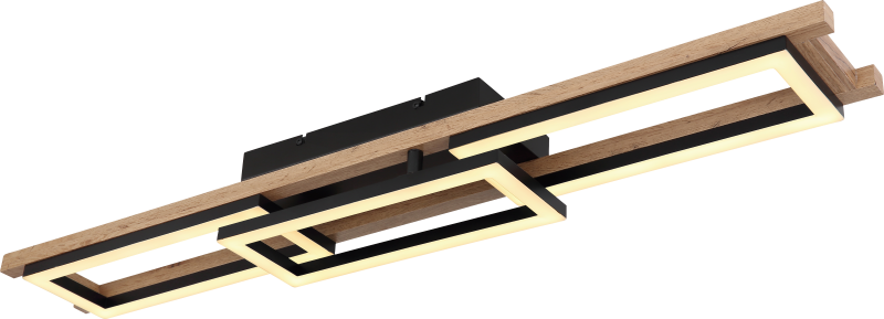 LED ceiling lamp brown wood matt black steel 18W 3000K oak wood with classic painting ON/OFF