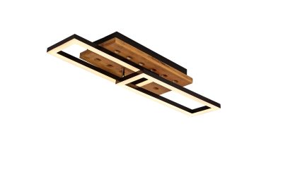 LED ceiling lamp brown wood matt black steel 18W 3000K oak wood with classic painting ON/OFF