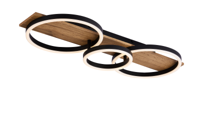 LED ceiling lamp BROWN WOOD 2*D30cm ring + 1*D20cm ring 32W/1750LM/3000K/CRI≧80 oak wood with classic painting matt black canopy+ring white silicon wall control on/off