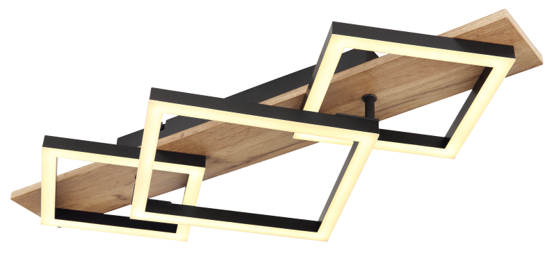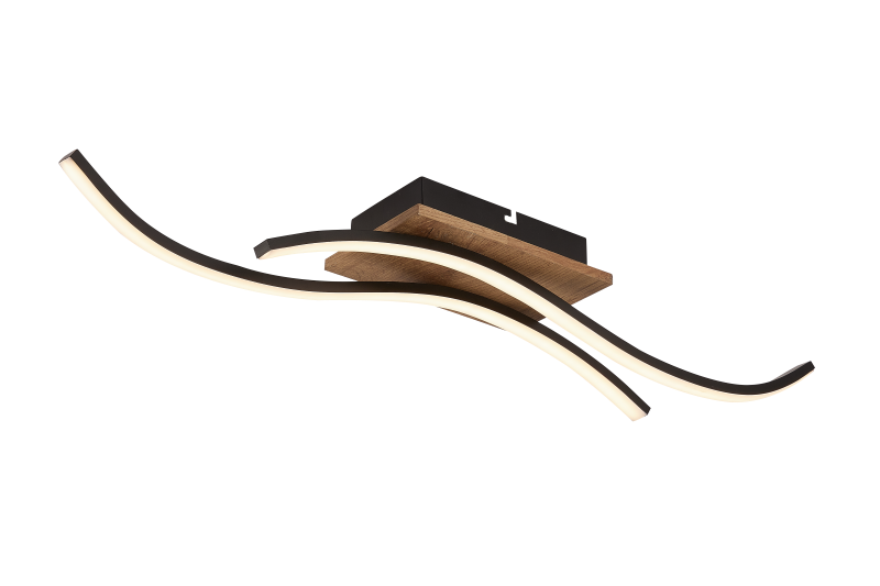 LED ceiling lamp brown wood matt black steel 24W 3000K oak wood with classic painting ON/OFF